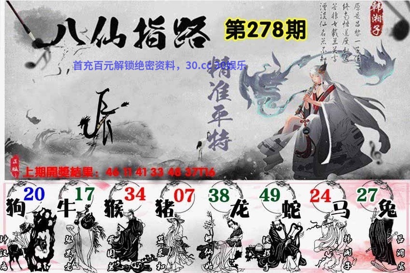 275期(澳门醉八仙殺肖)《狗肖》 |